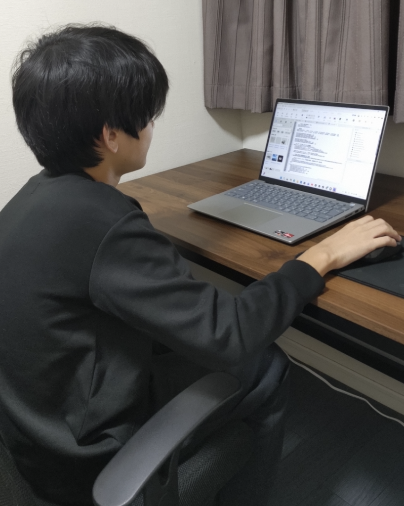 プログラミングは学習というより、もう趣味みたいな感じで、教室でも自宅でも、気づけばパソコンを開いているような…友達とロブロックスで通話しながら遊んだり、自分の作ったゲームを遊んでもらったりして楽しんでいます。