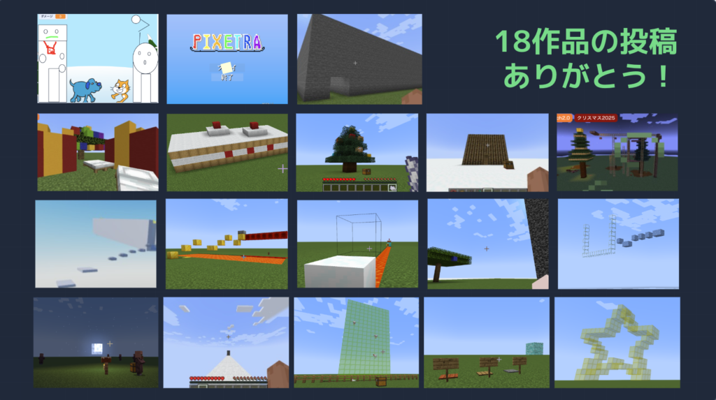 Minecraftを使ったプログラミング作品が本年も多く集まりました。