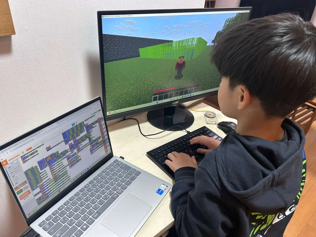 お母さん:うちは、私が昔少しPythonを勉強したことがあったので、基本的なことはわかるんです。でも、マイクラの仕様そのものがわかっていなくて。本人が「全然動かない!」ってなったときに、二人で画面を凝視してバグ探しをしています(笑)。