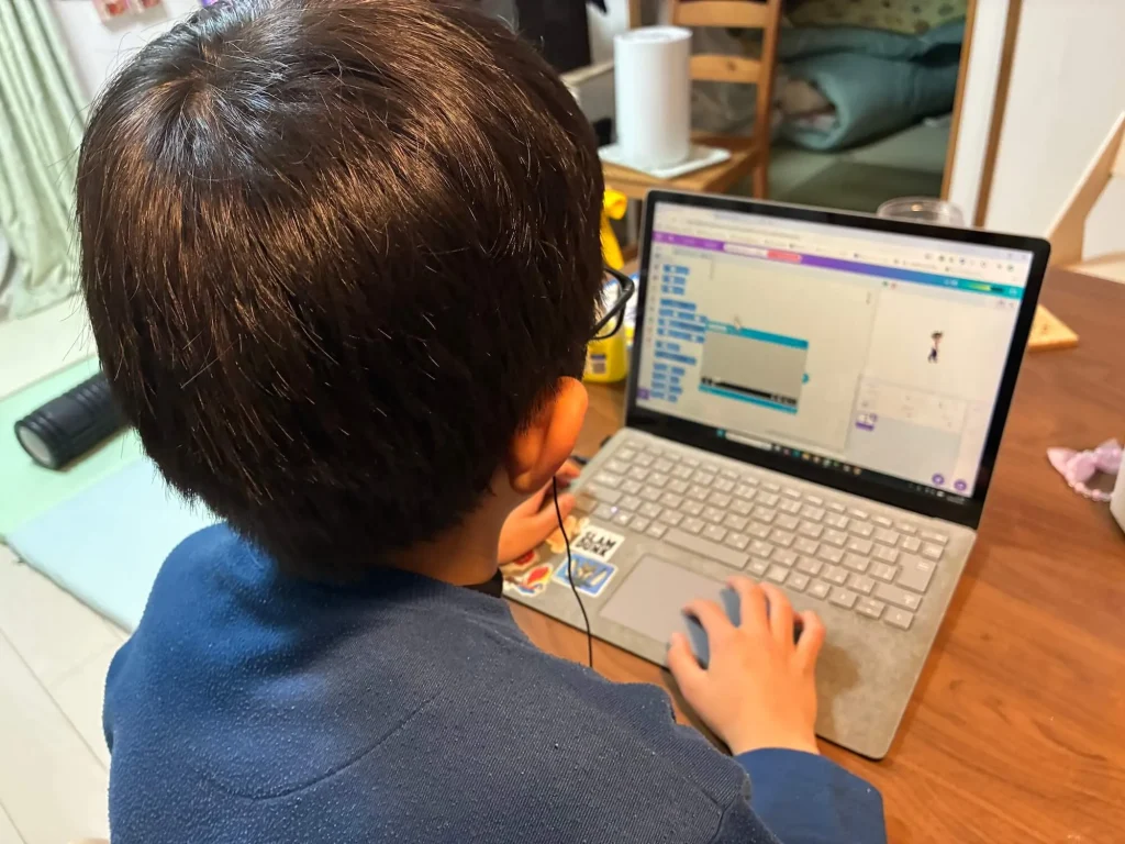 お父さん:この子は算数が得意で、論理的な思考も向いていそうだったので、プログラミングの習い事が良いかなと思っていました。本人が「通いよりもオンラインがいい」と言いまして、そこでオンラインで学べるサービスを探していたところ、デジタネさんのページを見つけて申し込みました。