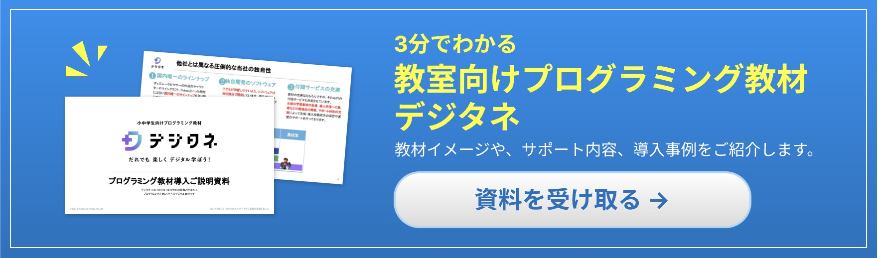 小・中学生向けオンラインプログラミング教材の「デジタネ」では、小学生から本格的にプログラミング学習ができる教材を提供しています。